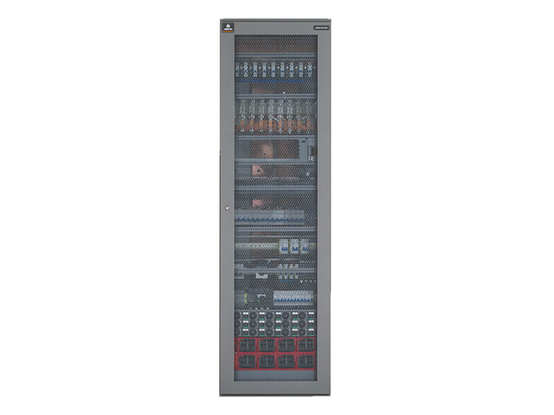 Cabinet efficiency >99,7% from rectifier output to distribution output enabling maximum system efficiency <96,2% from grid to load