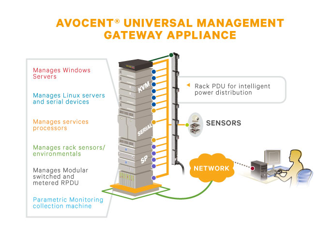 The Avocent Universal Management Gateway is the first data center appliance that enables true, real-time, integrated monitoring, access and control across IT and facilities systems in the data center.