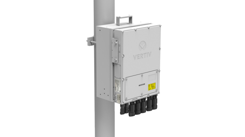 Place Vertiv™ NetSure™ IPE outdoor rectifiers next to radio equipment at the top of poles, towers, or buildings to reduce voltage drop.