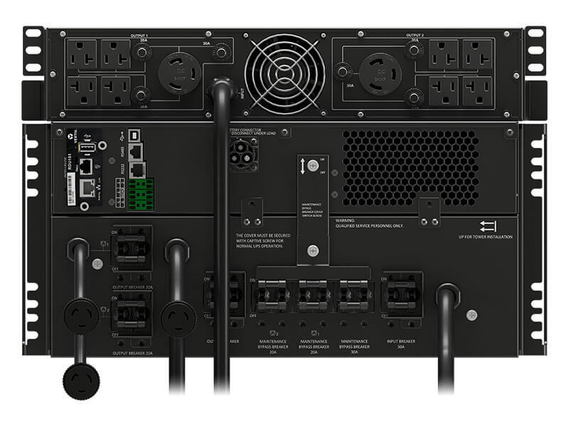 8,000 VA / 8,000 W   Typical: 208VAC / Range: 176-288VAC   200/208/220/230/240 VAC (user-configurable)   Up to 98% Active ECO Mode; up to 95% on-line mode   Hardwired in/out + Output: 2 x L6-20R, 2 x L6-30R   8.5 in   16.9 in   24.8 in   164.2 lb
