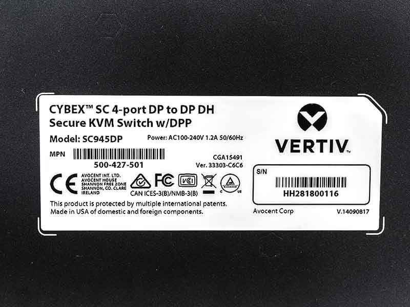 The Cybex Secure SC945DP KVM switch delivers strong, effective security management designed to prevent unauthorized access via peripheral devices while delivering transparent security that does not impede user productivity