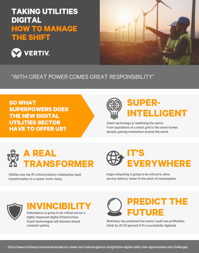 The stark challenge for the utilities sector is precisely that we’re all reliant on it. It touches almost every facet of our daily lives. With a diverse customer base from the consumer to large enterprises, many organisations in electricity, gas and nuclear are in the midst of change. Indeed, a 2017 Vertiv report concluded that the high performance of the utilities industry is essential for the smooth running of our daily lives.