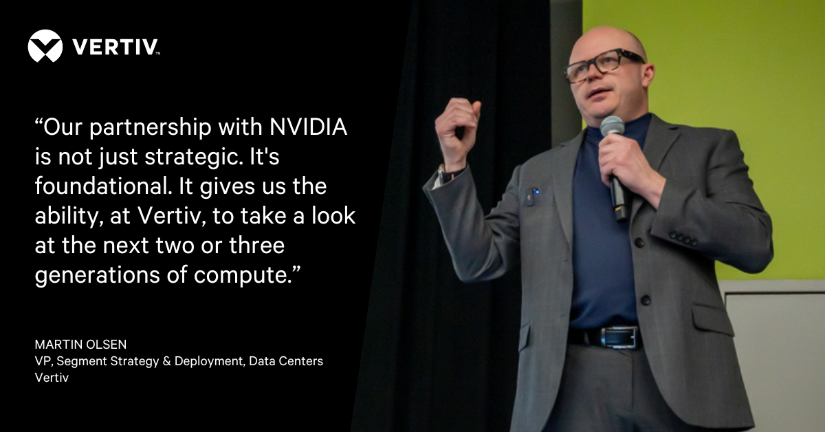 Martin Olsen, VP, segment strategy and deployment for data centers at Vertiv, focuses on the touch points between IT and OT related to AI and works very closely with key partners such as NVIDIA. Martin recently discussed Vertiv’s ongoing collaboration with AI-leader NVIDIA on a number of fronts including the recently released GB300 NVL72 reference design, aimed at gigawatt-scale AI deployments. This solution supports rack densities of up to 142 kW while leveraging NVIDIA Omniverse for AI-driven simulations.