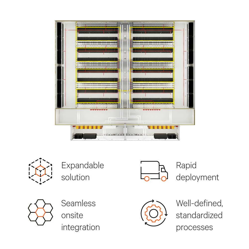 • SCALABLE SOLUTION: It comes in building blocks of 0.5MW and 1MW, giving you greater flexibility to grow your capacity to multiple MW at a single site or across multiple locations.