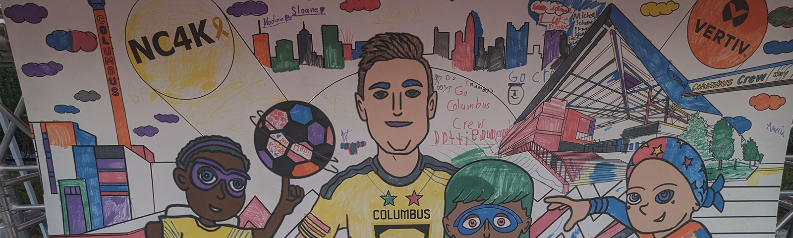 On September 30th, 2023, guests were invited to participate in a great cause at Lower.com Field, home of the Columbus Crew by taking the opportunity to leave their mark on a mural that will be displayed for years at NC4K. The mural, designed by talented local artist Adam Hernandez, became a canvas for individuals to express their support and love for those who battle childhood cancer. Families, friends, and Crew fans of all ages gathered around to color the mural.