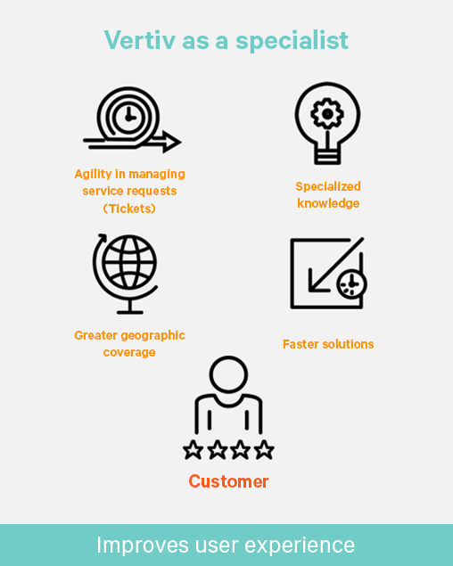 Furthermore, Vertiv seeks to standardize and streamline processes and reduce prices while improving the agreed SLA times. This is covered by a standardized agreement that promotes quality service and improves the user experience.