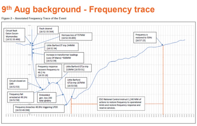 Figure 1. A real UK event that nearly crashed the grid at 28mS, causing blackouts and public service failures. – Note: DAR = Distributed Energy Resources