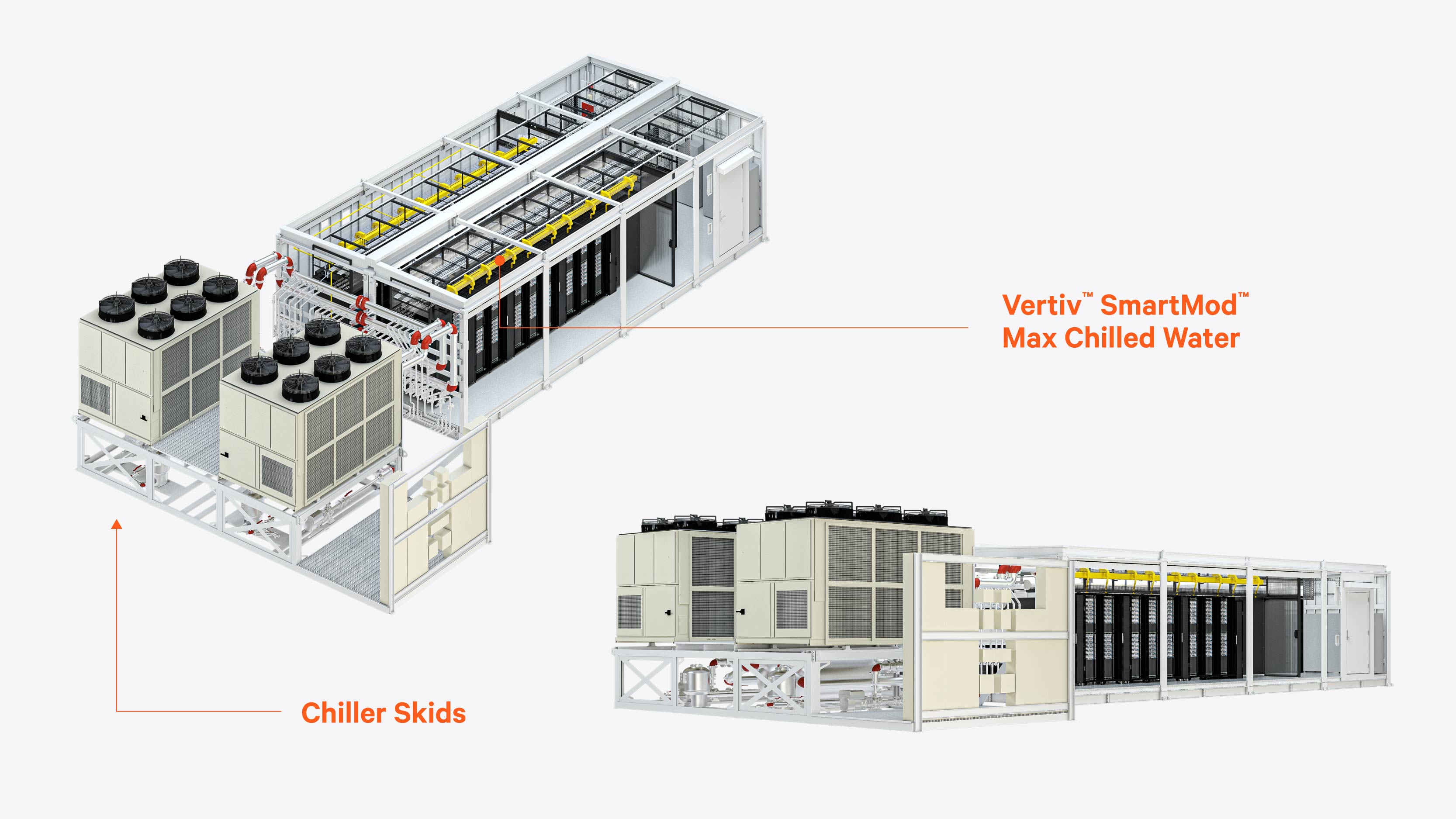 Modular data centers are pre-engineered, prefabricated, and standardized buildings, equipped with power and cooling, that house servers and network equipment. The types of modular data centers include container data centers, prefabricated data halls, and prefabricated power & cooling modules. Our SmartMod™ family consists of these modular data centers that can go from a single module solution, 100kW IT, 12 IT racks up to a dual module solution that can offer up to 210kW and DX as a Thermal solution or Chilled Water.