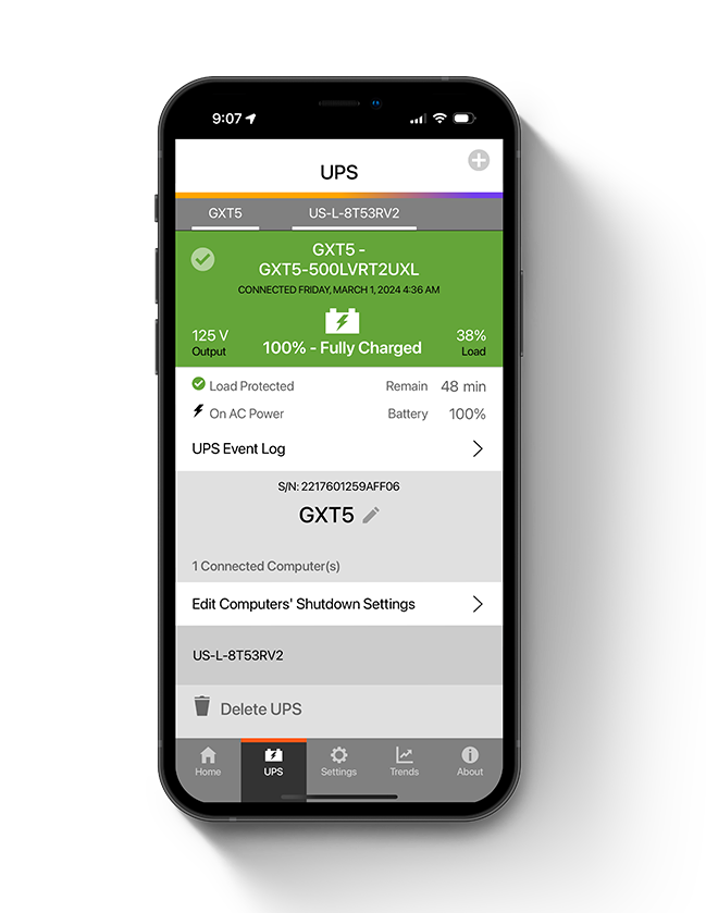 *Note: Mobile access to UPS status currently requires connectivity to the same local area network (LAN).
