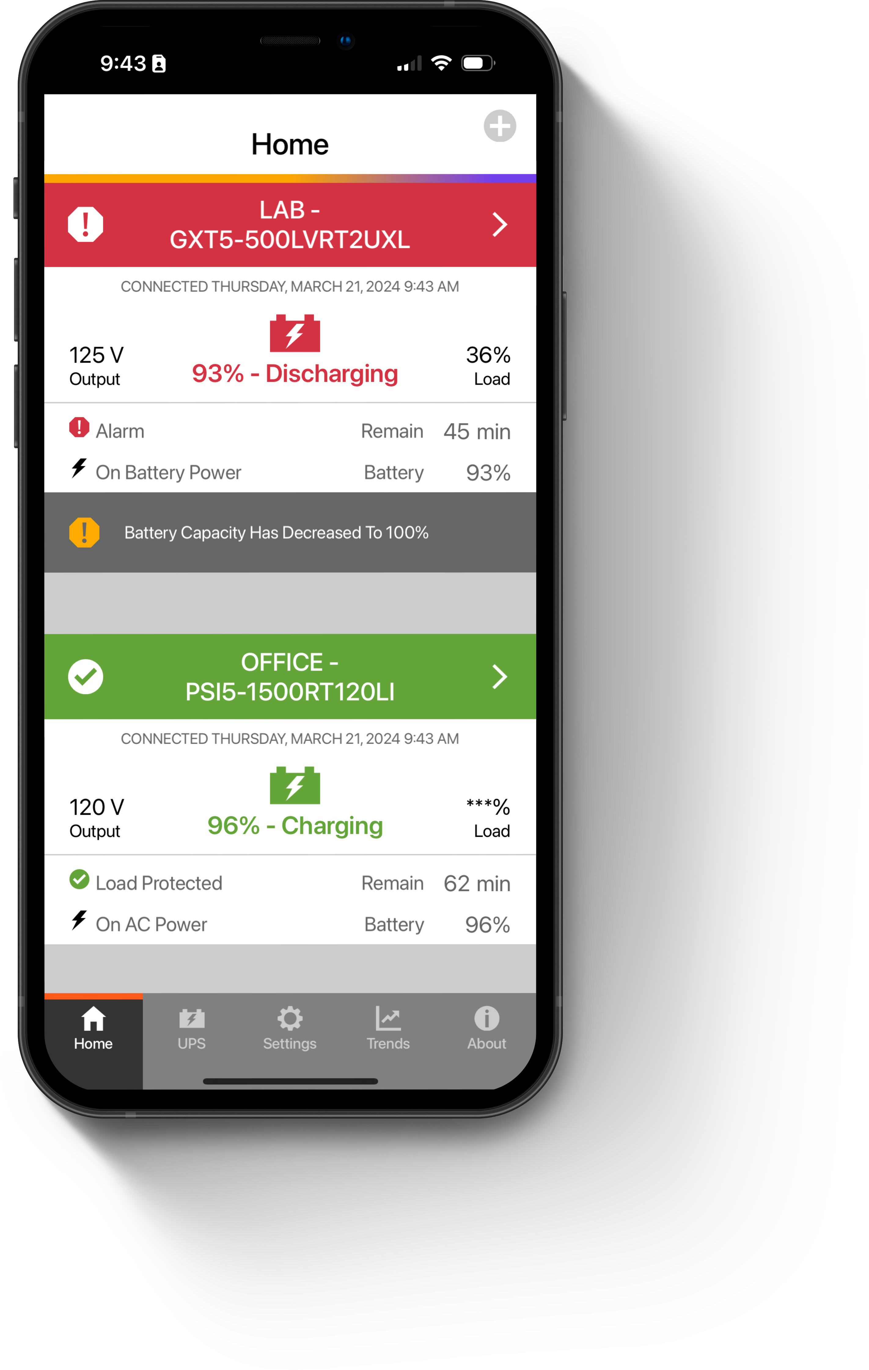 - Mobile access to UPS status and alerts*