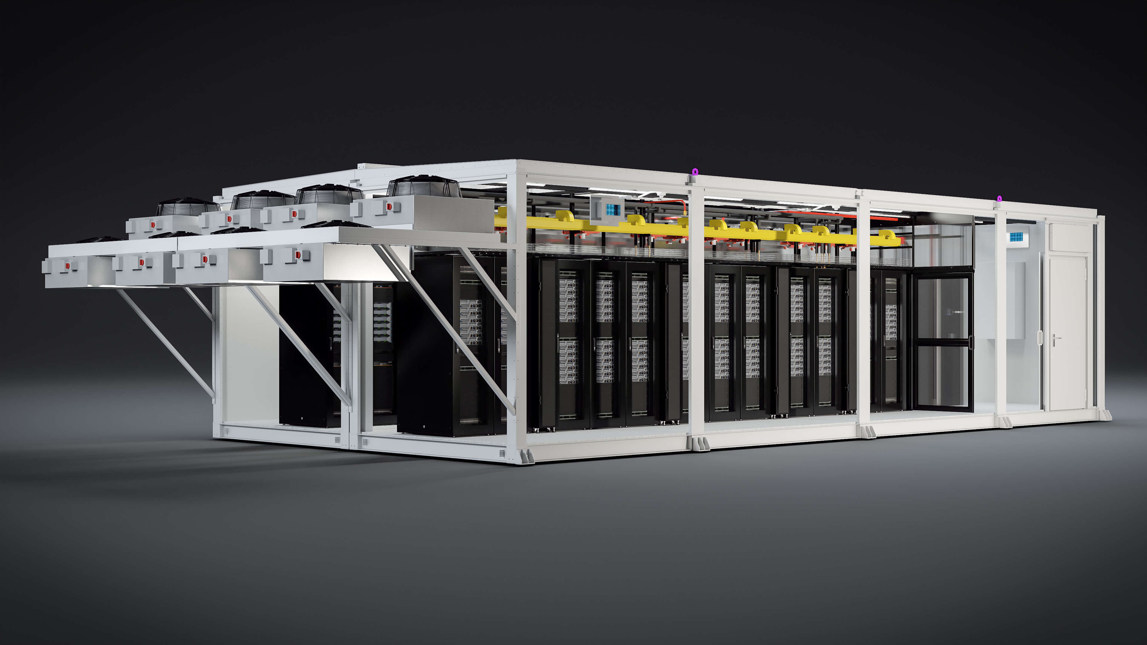 The complete IT Infrastructure modular data center including all key infrastructure components, factory installed into a secure, weatherproof and transportable enclosure.