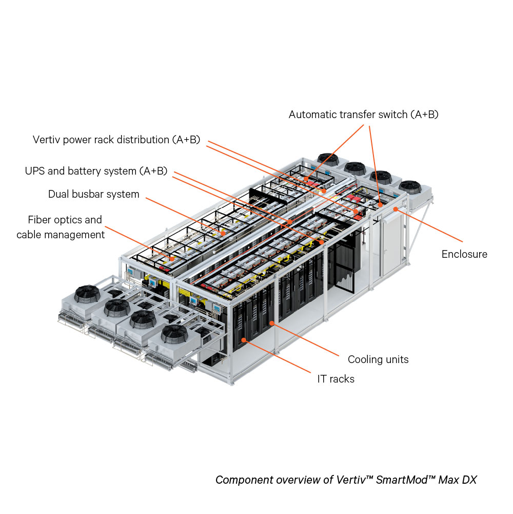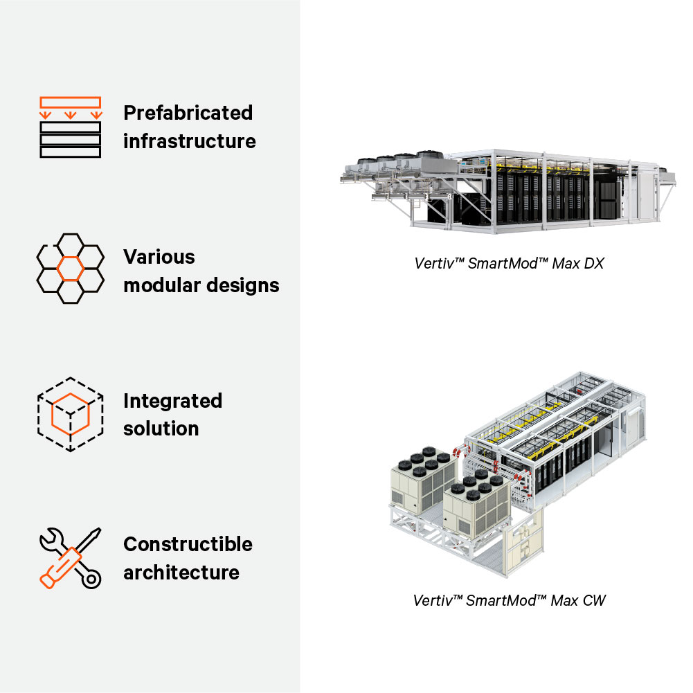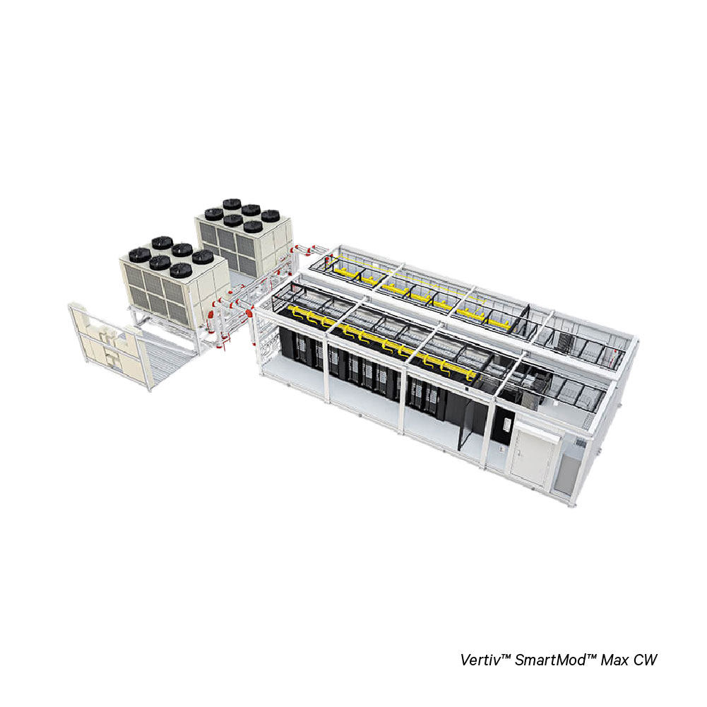 - REDUCED ENVIRONMENTAL IMPACT: The Vertiv™ SmartMod™ Max CW variant uses chilled water cooling, helping reduce direct environmental impacts in data center applications.