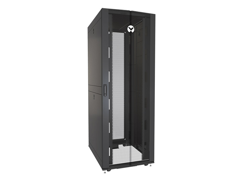 All Vertiv™ Racks come complete with keys and a hardware kit that includes 50 M6 cage nuts and screws, a cage nut installation tool, edge protection for top panel cable entry, a T30 / Phillips L key and T30 extension driver. All models feature a single 77% perforated locking front door, split 77% perforated locking rear doors, two pairs of split locking side panels, a high-density cable entry top cover (2000 Cat 6 cables), two sets of 19” EIA rails and two full height rack PDU Mounting /cable management brackets (one per side). The Vertiv™ Rack is built with low-profile casters and leveling feet, baying brackets and bolt-down brackets. VRXXXXSP ship with 2000 lb. rated shock packaging VRXXXXTAA are TAA Compliant *Nominal dimensions, reference submittal drawings for exact dimensions