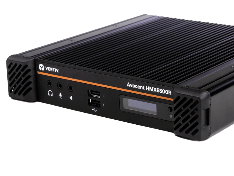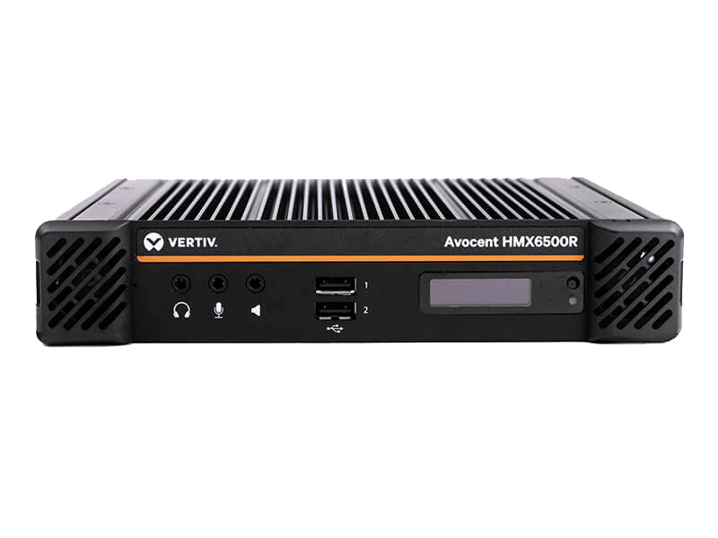The Vertiv™ Avocent® HMX 6500R (receiver) High Performance KVM (keyboard, video, mouse) receiver is designed for organizations that need to provide workers the ability to seamlessly access and share one or more computing resource(s). This receiver provides access to both physical and virtual machines, allowing administrators to configure the management system to enable permissions without the addition of a new transmitter every time a user needs access. The HMX 6500R can integrate seamlessly with existing KVM infrastructures and is ideal for broadcasting, post-production, control centers and other industries where access to virtual machines is required.