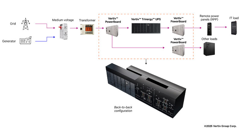 As high-density computing pushes power requirements to unprecedented levels, data centers face critical challenges in managing peak loads and varying demands. Vertiv's comprehensive Power Solutions combine innovative close-coupling integration with intelligent monitoring to reduce power loss and improve space utilization. Our flexible deployment options— from on-site assembly to prefabricated systems— help you achieve significant savings in installation costs, space, and deployment time.