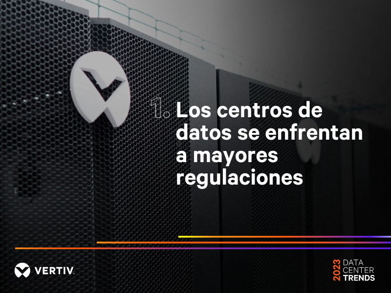 Las crecientes presiones para satisfacer la demanda de energía y agua por parte de los consumidores han obligado a los gobiernos de todos los niveles a analizar a mayor profundidad los centros de datos y su consumo desmedido de estos recursos. Se estima que los centros de datos son los responsables del 3% del consumo eléctrico mundial y se prevé y se prevé que aumente al 4 % para 2030. En promedio, una instalación de hiperescala consume entre 20 y 50 MW al año —teóricamente, suficiente electricidad para alimentar hasta 37.000 hogares—. Los expertos de Vertiv esperan que esto dé lugar a un mayor escrutinio gubernamental en 2023.