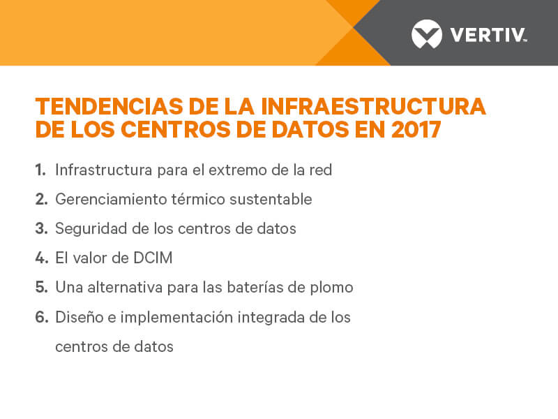 Sunrise, Florida [12 de diciembre, 2016] – Vertiv, antes Emerson Network Power, anunció hoy las seis tendencias para la infraestructura de centros de datos en 2017. Las tendencias identificadas este año se suman a las publicadas por Emerson Network Power en el inicio del 2016.