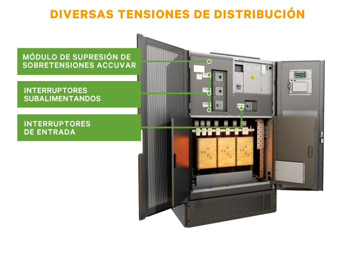 Mejora la calidad del suministro eléctrico y flexibiliza la distribución de la energía en los centros de datos. Se diseñó para aprovechar la comodidad y el ahorro de contar con todos los componentes de la distribución de energía en un solo gabinete. Además, estos gabinetes se someten a pruebas en la fábrica como un solo sistema y ofrecen la flexibilidad de un sistema de potencia diseñado a la medida. Este sistema con autocontención proporciona aislamiento de la potencia superior y eficiente.