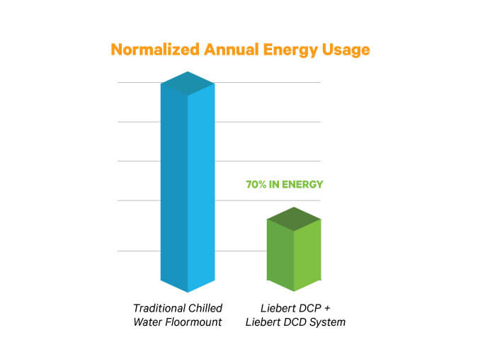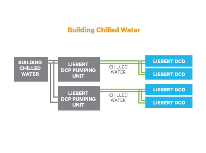 The Liebert DCD is a fanless heat exchanger module that installs as the rear door of an equipment rack. This chilled water-based system provides up to 35kW of room-neutral cooling. As many as ten Liebert DCD modules are connected to a single Liebert DCP coolant pumping unit, which acts as an isolating heat exchanger between the building chilled water source and the circulating cooling water.