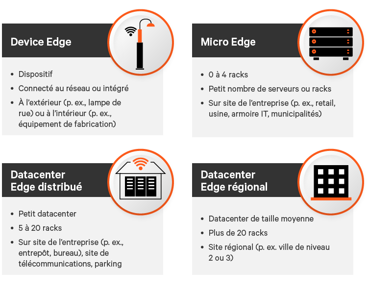 Le terme Sites Edge existants fait référence aux ressources IT distribuées qui ont traditionnellement été déployées dans des bureaux distants et d’autres sites d’entreprise en vue de permettre le traitement et la communication des données locales.