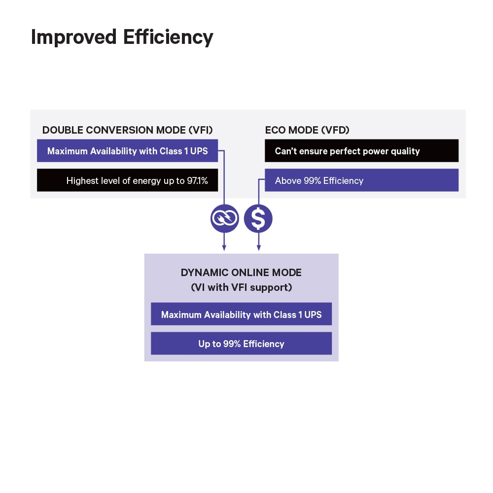 Vertiv™ Trinergy™ est une ASI haute puissance dotée d’une fiabilité et d’une résilience optimales, d’une architecture modulaire et d’une efficacité supérieure. Il est idéal pour les environnements exigeants des applications à grande échelle comme l’IA. Il est capable gérer des variations rapides de charge sans dégradation des performances, garantissant ainsi un fonctionnement continu. Avec un rendement de 99 % (en mode Dynamic Online), il permet de réaliser des économies de coûts et de réduire le coût total de possession. Disponible en configurations UL et CE standardisées pour les installations internationales.