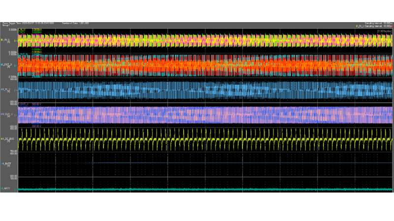 Load profile description: This profile simulates a more stable cycling behavior (500ms ON / 500ms OFF), allowing the DC bus to reach a steady state between transitions.