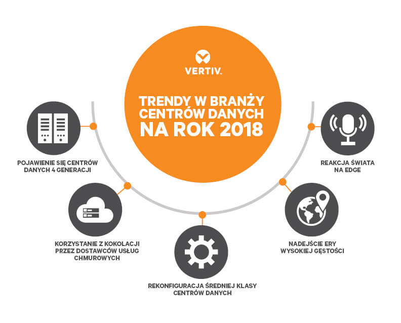 We wcześniejszych prognozach firmy Vertiv rozpoznano między innymi trendy związane z chmurą, zintegrowanymi systemami czy bezpieczeństwem infrastruktury. Poniżej zestawiono pięć oczekiwanych trendów, które wpłyną na środowisko centrów danych w 2018 roku: