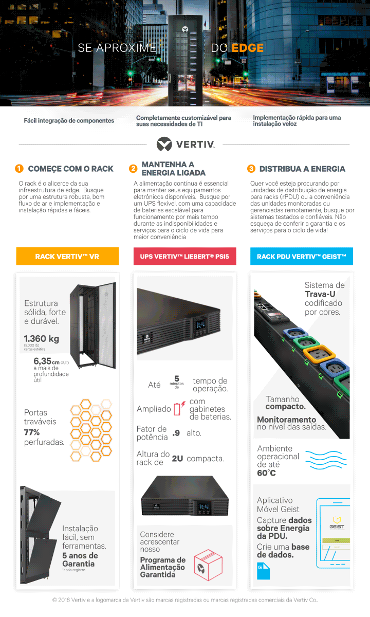 Já sabe do que você precisa? Quer a conveniência da compra on-line e envio? Algumas categorias de produtos Vertiv podem ser adquiridas por meio de um revendedor on-line.
