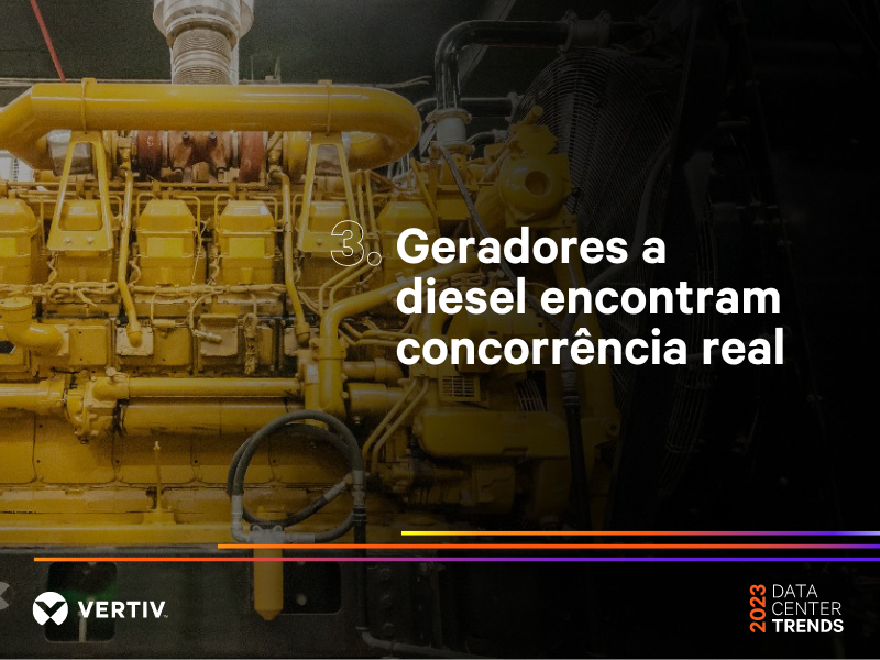 Essas são medidas de transição para minimizar o papel dos geradores enquanto a indústria busca por outras opções – incluindo novas tecnologias de baterias – para energia de backup estendida. Em 2023, os especialistas da Vertiv preveem que uma alternativa preferencial surgirá – especificamente células a combustível de hidrogênio. Essas células a combustível funcionarão em grande parte como um gerador em um primeiro momento, proporcionando suporte à carga momentâneo e eventualmente existe a promessa de uma operação por muito tempo ou até mesmo contínua.