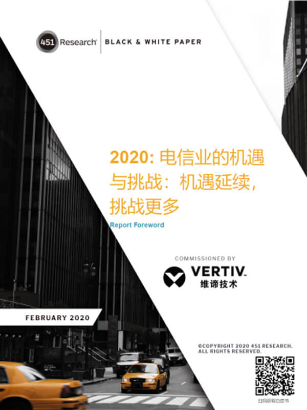2019年,Vertiv公司曾委托发布了一份里程碑式的调查报告《电信业的机遇与挑战》,最近,在原报告基础上又发布了一份更新报告《2020: 机遇延续,挑战加剧》 。技术分析公司451 Research在报告中指出,与边缘计算和5G连接相关的能源成本仍然是运营商密切关注的问题。