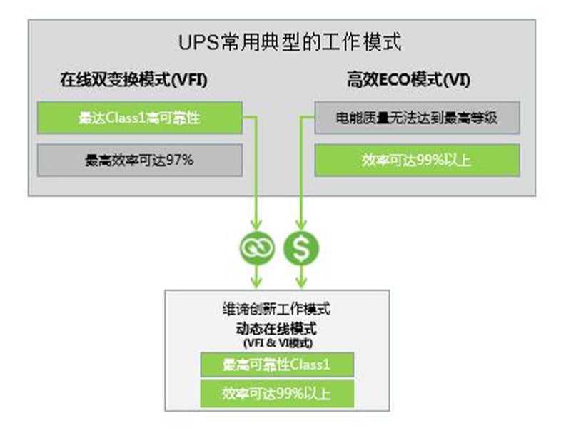Vertiv Liebert® EXL S1 300-1200kVA 储备一体UPS是一款更可靠、更高效、更灵活的高频一体化UPS产品,整流器和逆变器均采用三电平技术,双转换效率高达97%,并可通过智能并联提升轻载下的效率.最新推出的动态在线模式,在确保IEC 62040 1类供电质量和高可用性的前提下,可以提供高达99%的运行效率。 EXL S1拥有卓越的运行成本,降低了TCO 和 CO2 排放。
